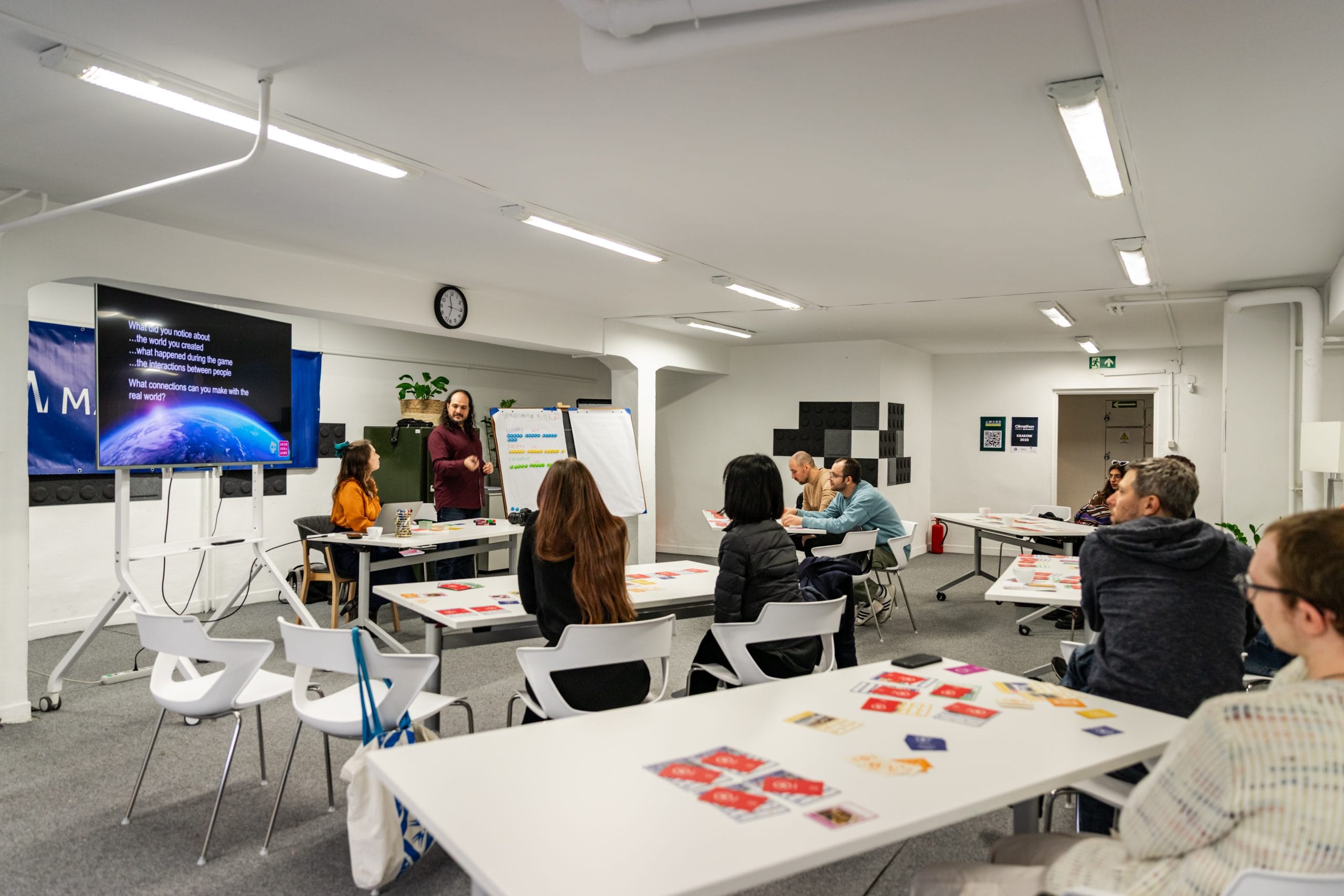 We started with introductions and some lively networking and then Antonis led an energising session of the 2030 SDGs Game to spark problem-solving mindsets. It’s always fascinating to watch the diverse strategies players adopt and the surprising results they achieve. From our experience, sessions can end in planetary collapse, but this passionate group of change-makers not only saved the planet, they also managed to achieve nearly all their personal goals. Impressive teamwork!
